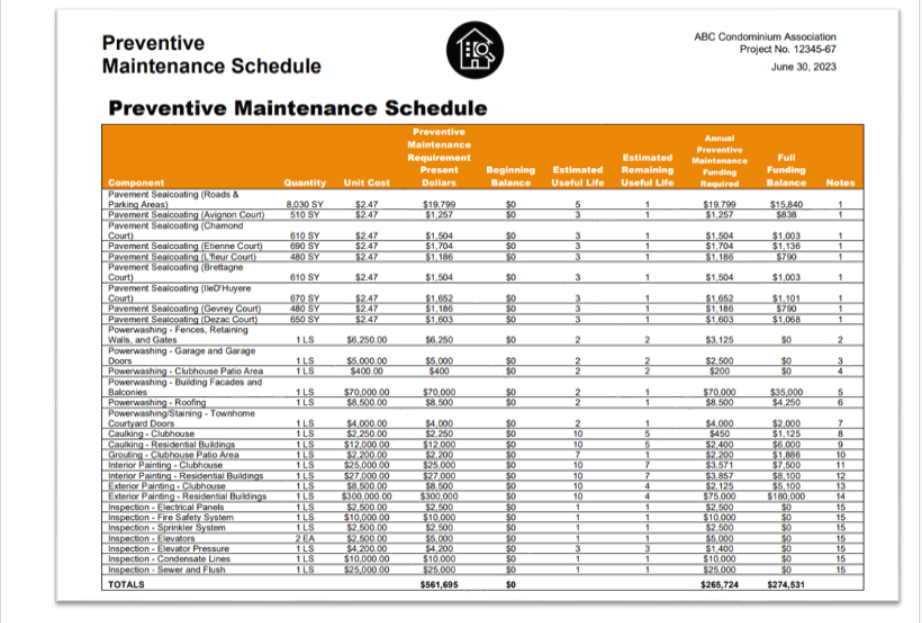 A preventive maintenance fund, similar to the reserve study fund, is a financial tool to proactively maintain a community’s common elements. Preventive maintenance helps to extend the life expectancy of the common elements that require maintenance less than every year but still need upkeep. By setting the money aside now, Associations can avoid unexpected large repair costs later, reduce the frequency of special assessments, and ensure the community remains in good condition for the homeowners.